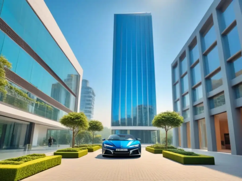 Inversión segura en bienes raíces internacionales: un rascacielos moderno rodeado de naturaleza, reflejando estabilidad y crecimiento